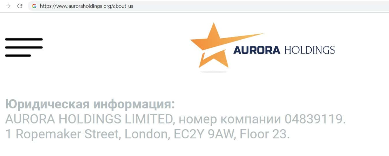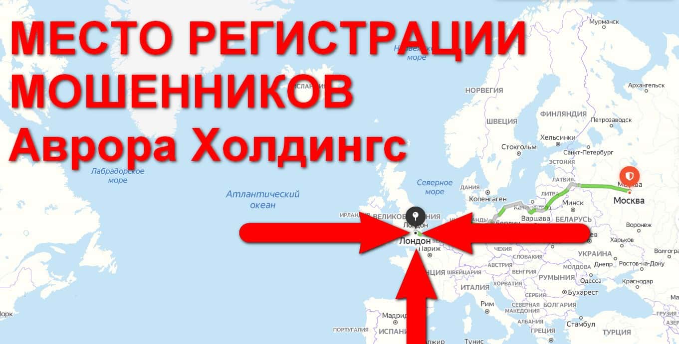 Для того, чтобы заманить пользователей в свой лохотрон, компания кидал Аврора Холдингс указала, что зарегистрирована в Лондоне, что является полнейшим враньём.