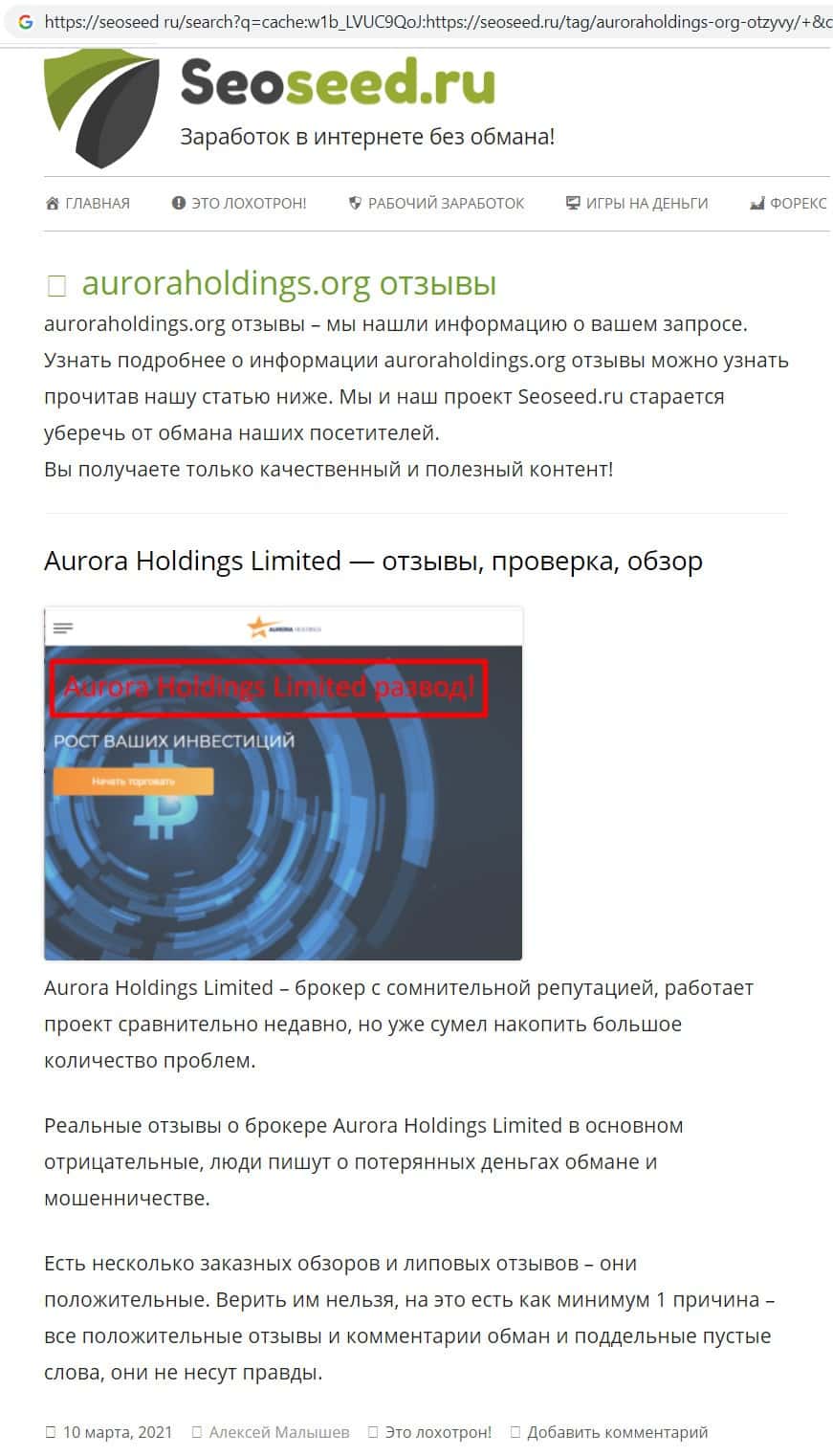 seoseed ru - информация о мошенниках AuroraHoldings Org