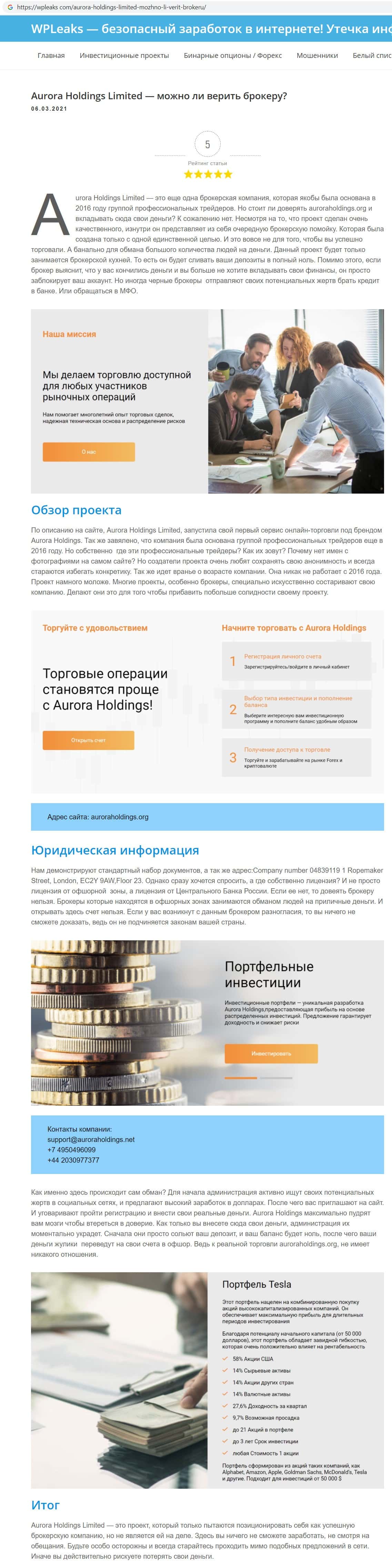 wpleaks com - информация о псевдоброкере AuroraHoldings Org
