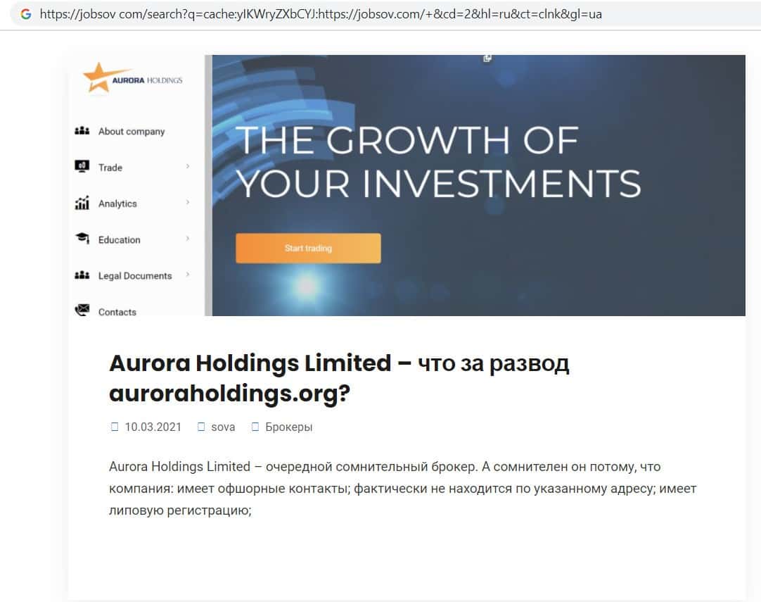 jobsov com - информация о фальшивом брокере AuroraHoldings Org