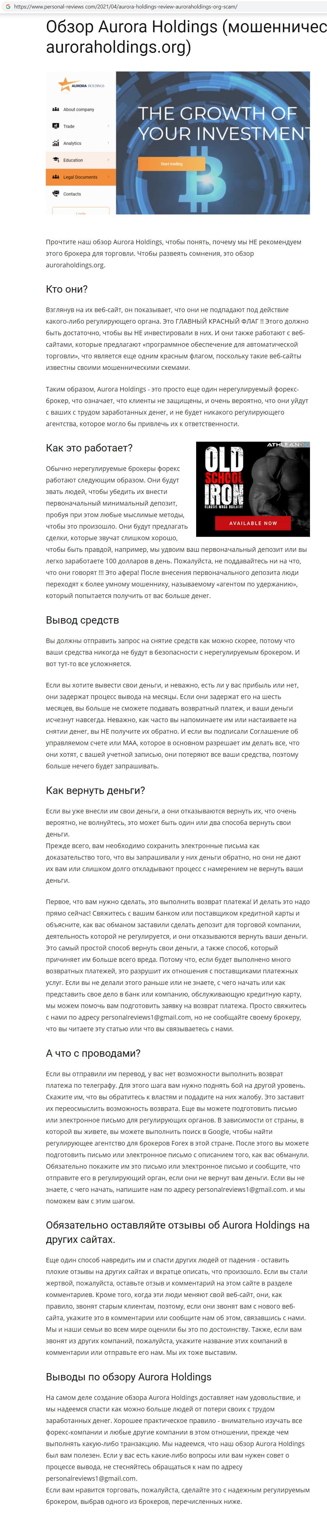 personal-reviews com - сайт с информацией о аферистах AuroraHoldings Org