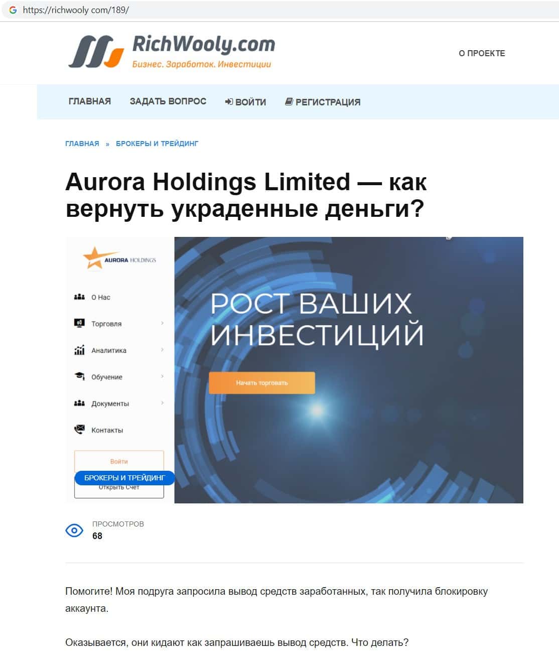 richwooly com - онлайн-сервис о аферистах AuroraHoldings Org