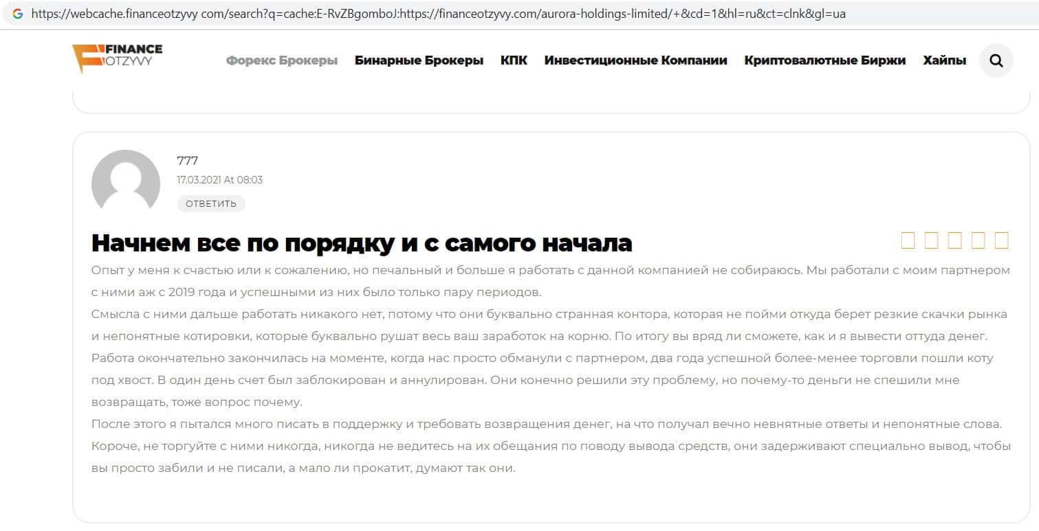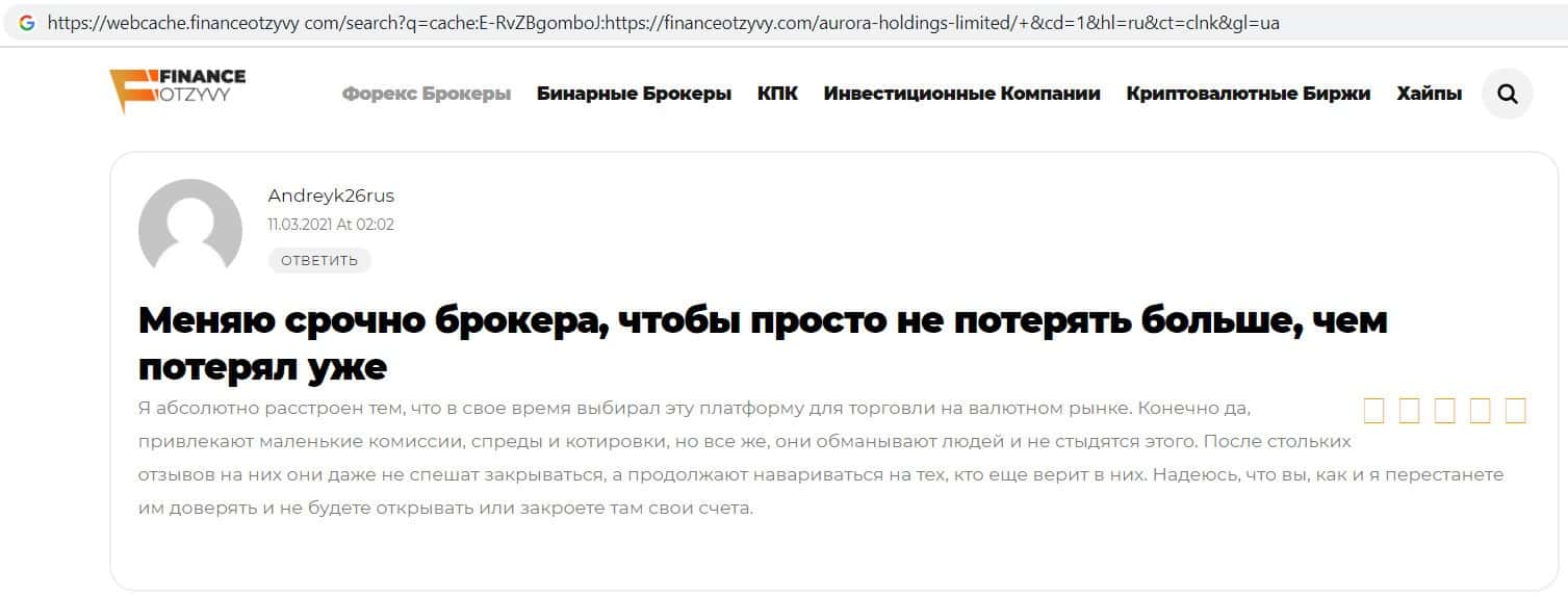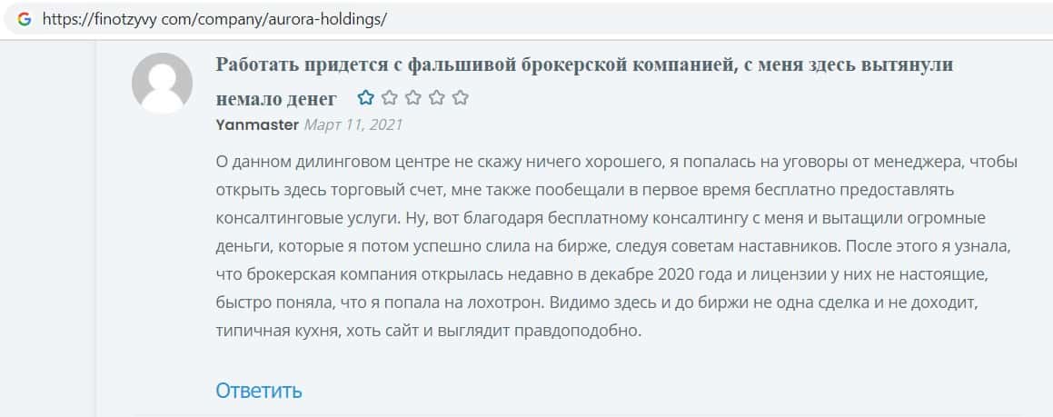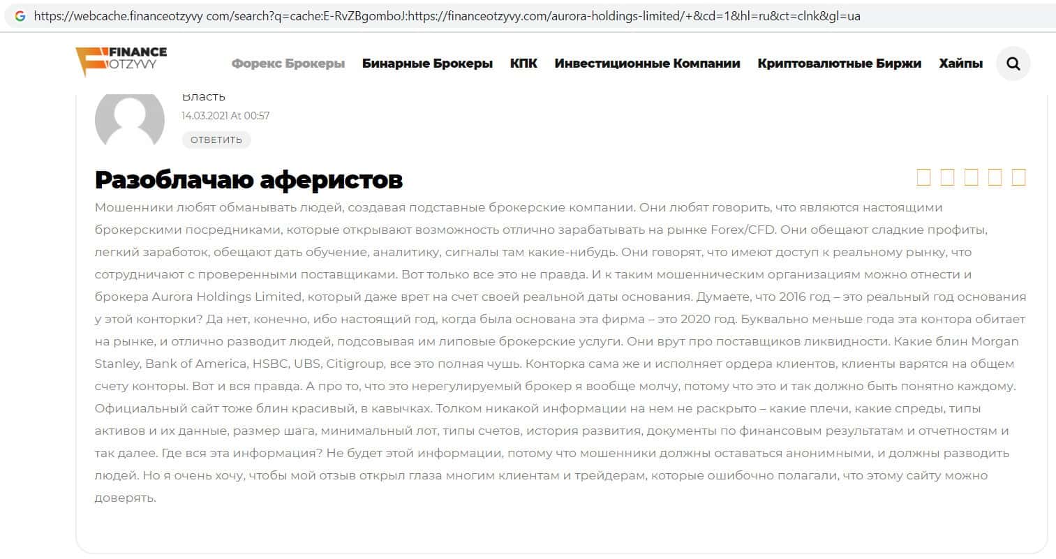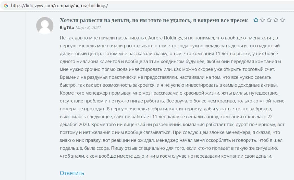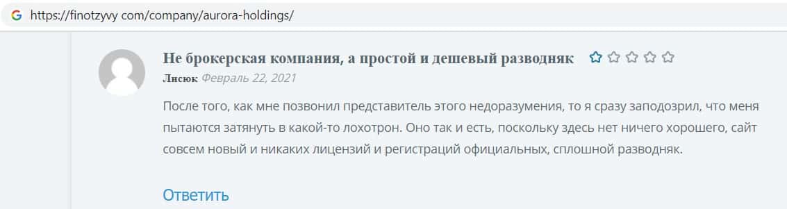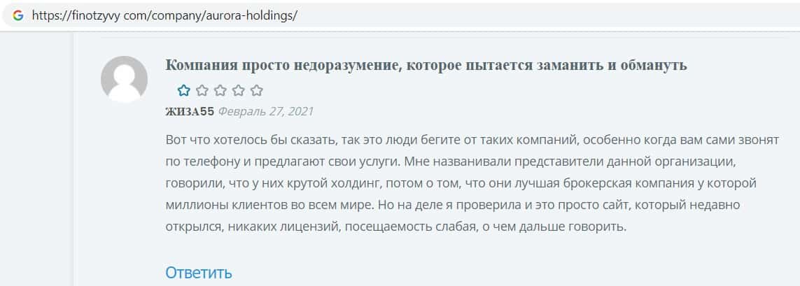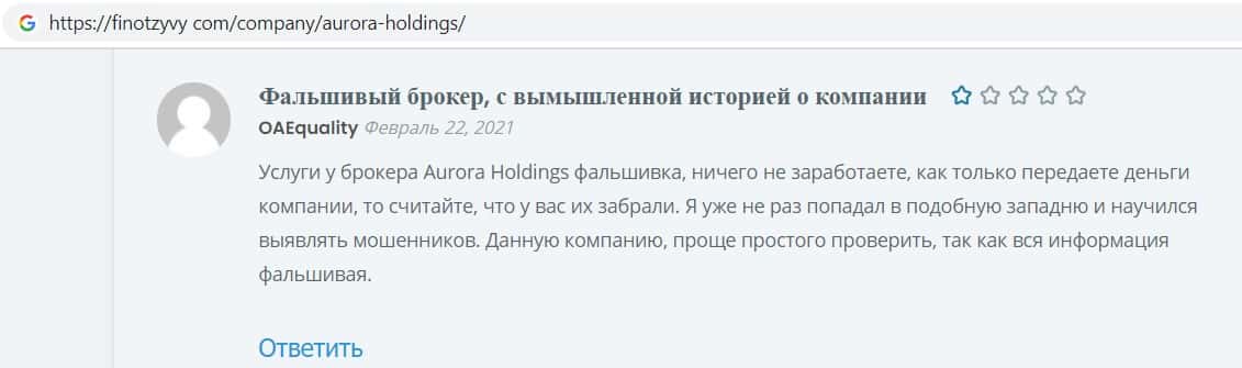 finotzyvy com - сайт с отзывами о аферистах AuroraHoldings Org