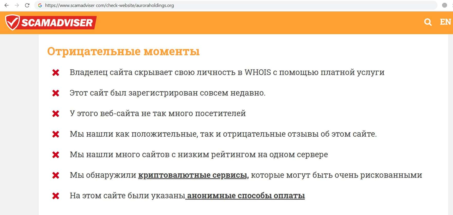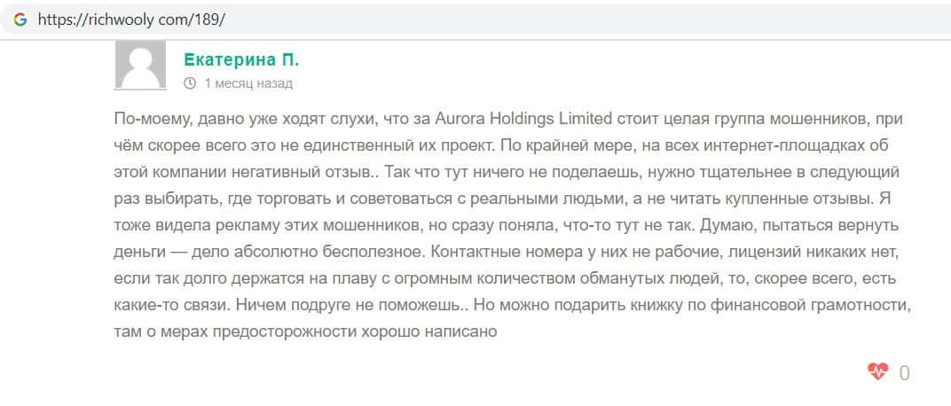 - Пользователи не доверяют финансовым кидалам AuroraHoldings Org