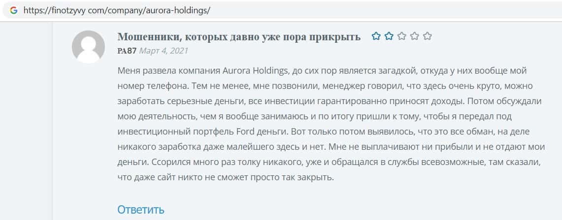- Отзывы интернет-пользователей о фирме махинаторов AuroraHoldings Org