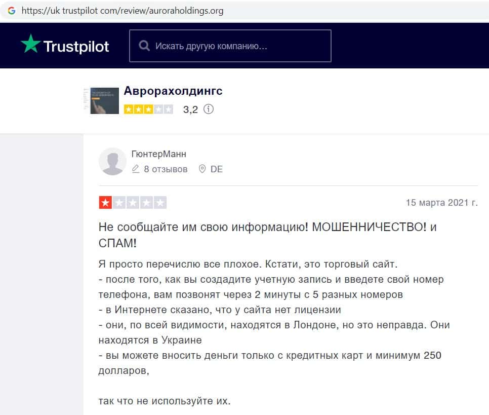 uk trustpilot com - сайт с отзывами о махинаторах Аврора Холдингс