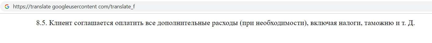 Ещё в клиентском соглашении кидал Аврора Холдингс есть пункт, который обязует клиентов оплачивать все дополнительные расходы компании, включая налоги и таможню.