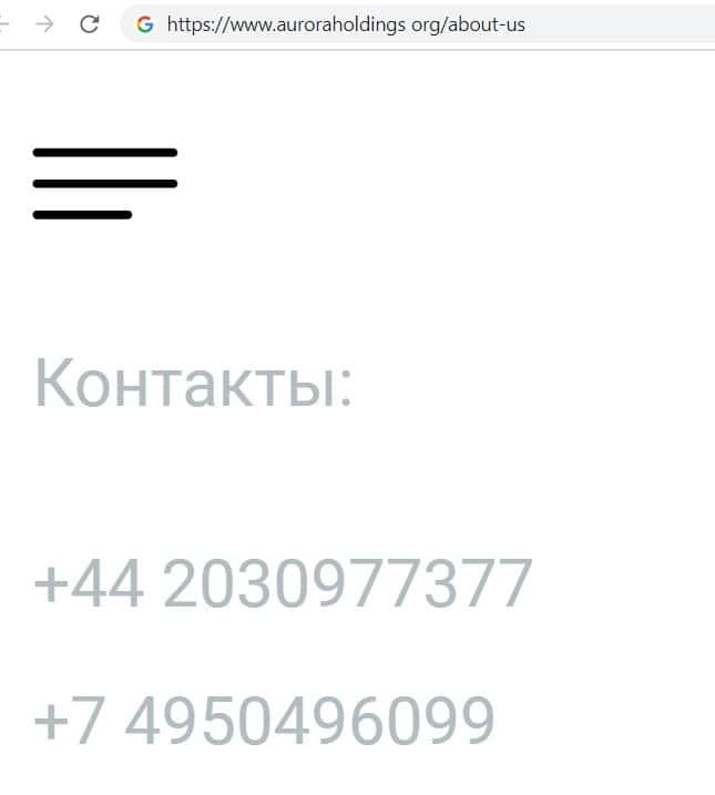 - Мошенники Аврора Холдингс разводят клиентов с номеров: +442030977377, +74950496099