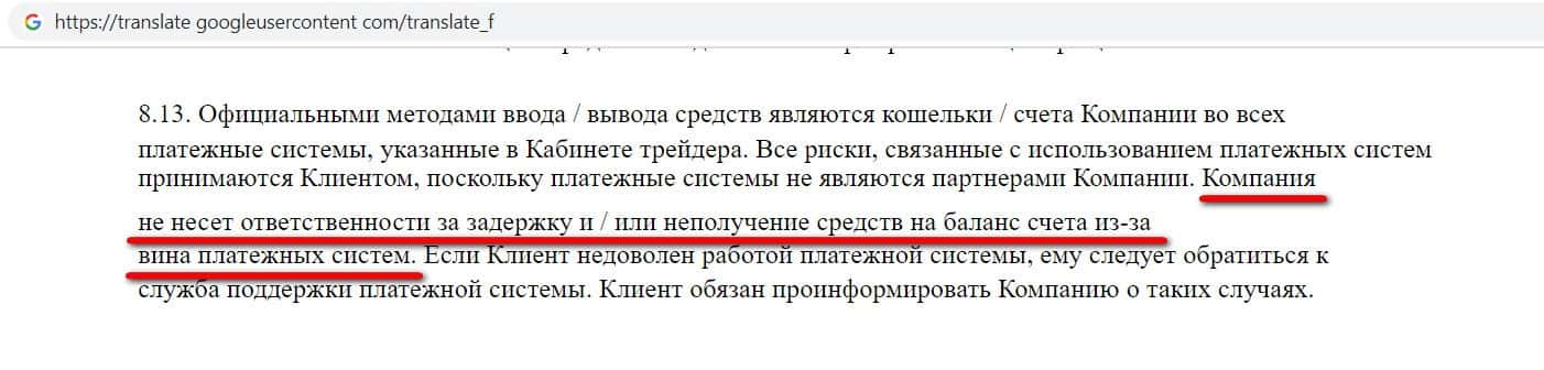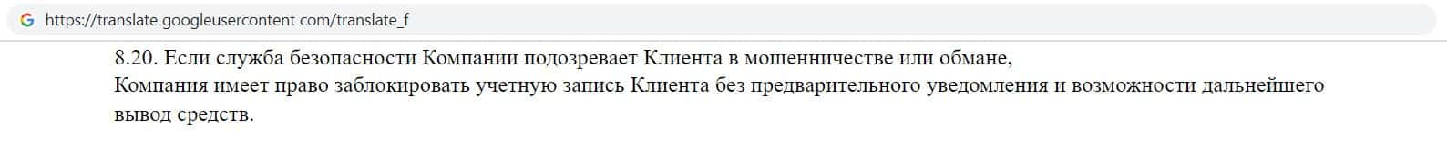 Так же лжеброкер Аврора Холдингс написал в соглашении, что если заподозрит клиента в мошенничестве, то имеет полное право заблокировать его аккаунт без возможности вывода средств.
