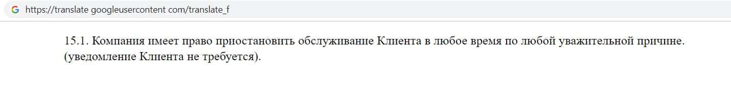 Ещё контора финансовых кидал Аврора Холдингс указала, что может приостановить обслуживание клиента по собственному усмотрению без уведомления клиента.