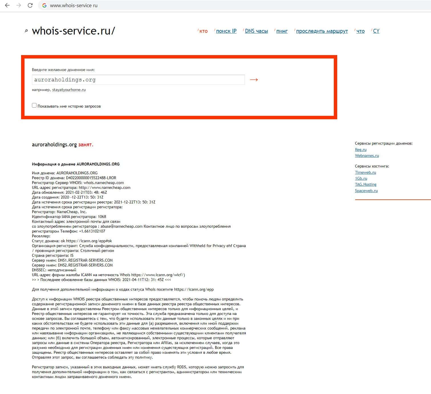 Кому принадлежит доменный адрес конторы разводил AuroraHoldings Org?