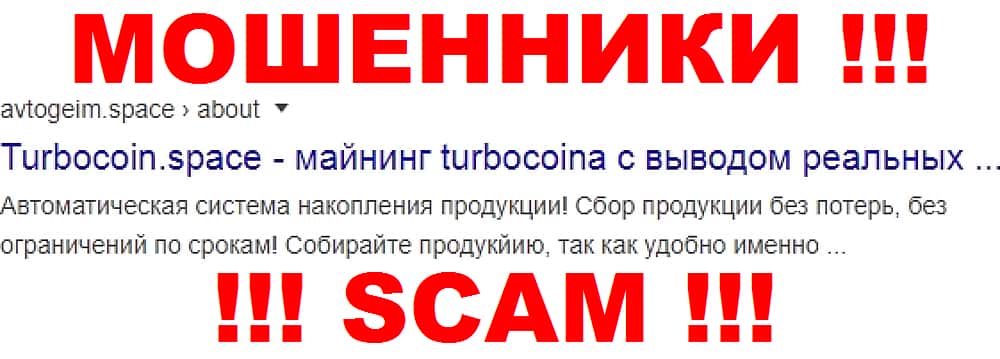 В результате проверки авантюрного проекта Авто Гейм, по просьбе одного из пользователей, удалось выяснить, что принимать эту подделку за какой-либо серьезный ресурс не стоит. Предлагая майнить некую фиктивную монету Turbocoin, которая не имеет никакой ценности, мошенники завлекают жертв в самый обычный хайп-лохотрон.