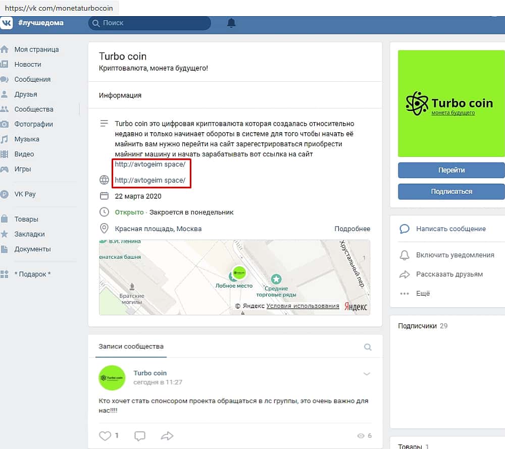 Авантюристы Авто Гейм имеют свою группу на страничках социальной сети vk com. Соцсеть очень удобна лохотронщикам, т.к. искать подобным образом своих жертв проще, чем продвигать корявый сайт с таким же кривым доменным именем. Как ни странно, но в день, когда сайт уже был не доступен, жулики опубликовали пост о поиске спонсоров.