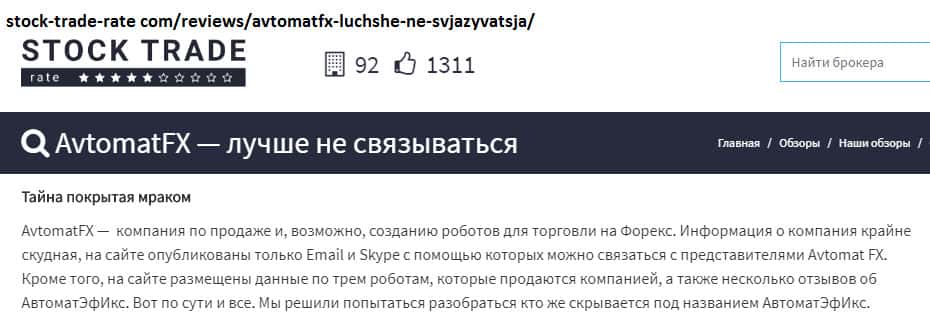 - Мошенническая контора AvtomatFX вызывает массу сомнений у опытных пользователей