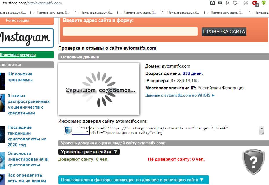 - Результаты проверки жуликов AvtomatFX на авторитетном сайте на причастие к мошенническим схемам