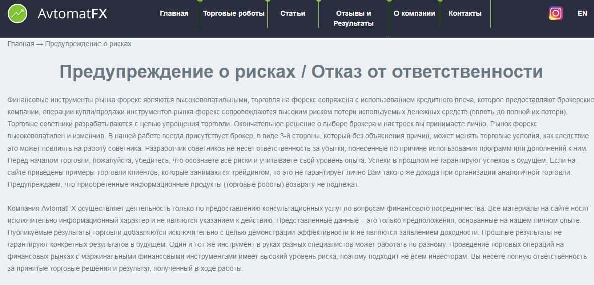 - Аферисты Автомат ФХ уходят от ответственности и сразу предупреждают клиентов, что гарантий не дают!