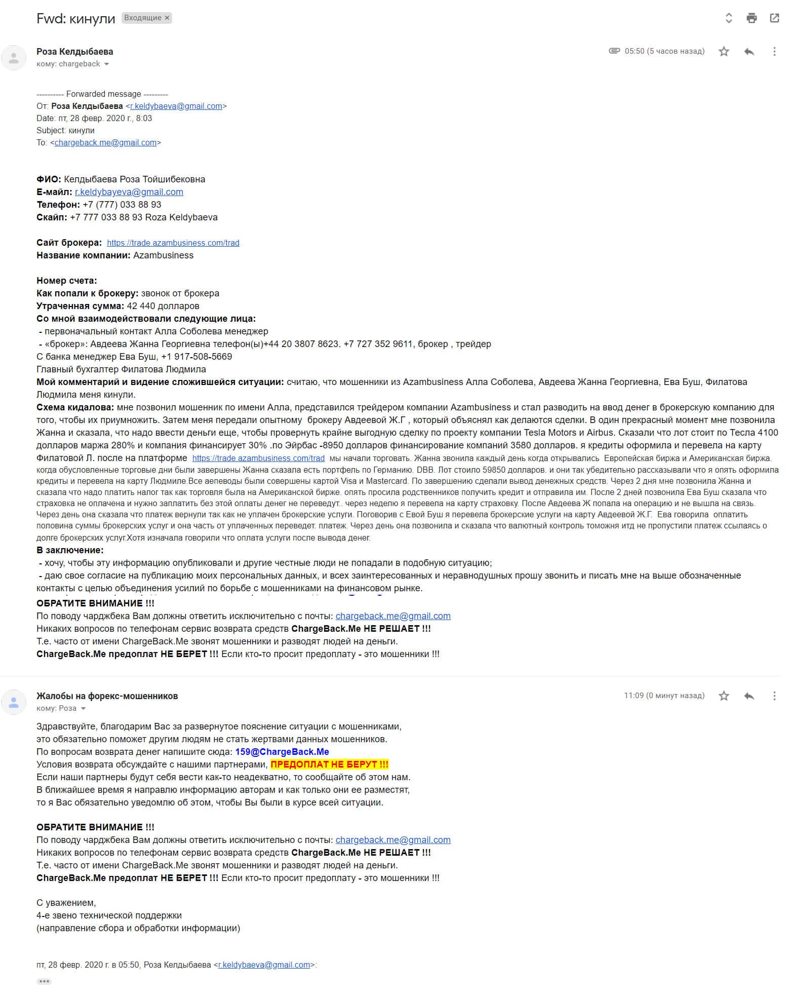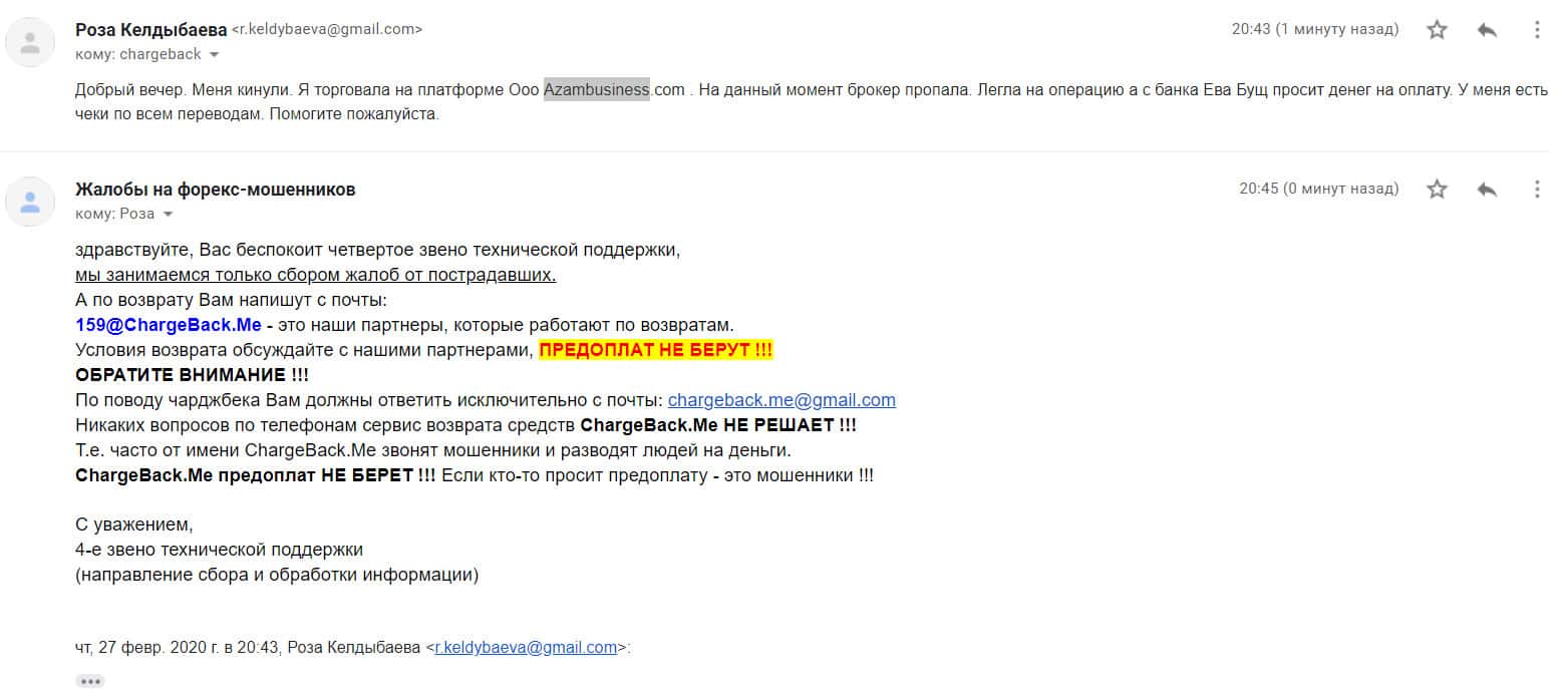 - Очередной пострадавший клиент мошеннической компании АзамБизнес пытается вернуть утраченные деньги