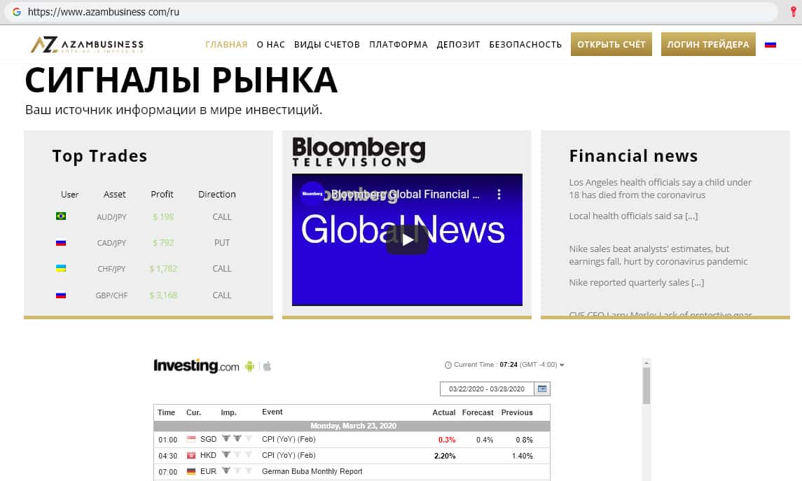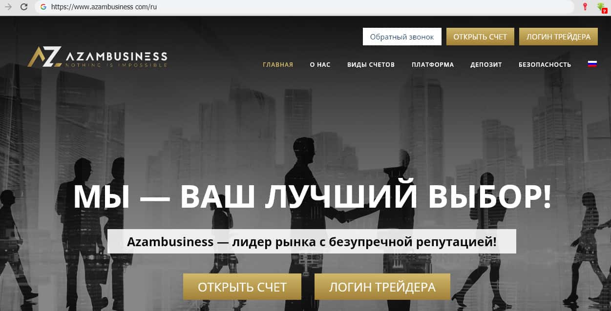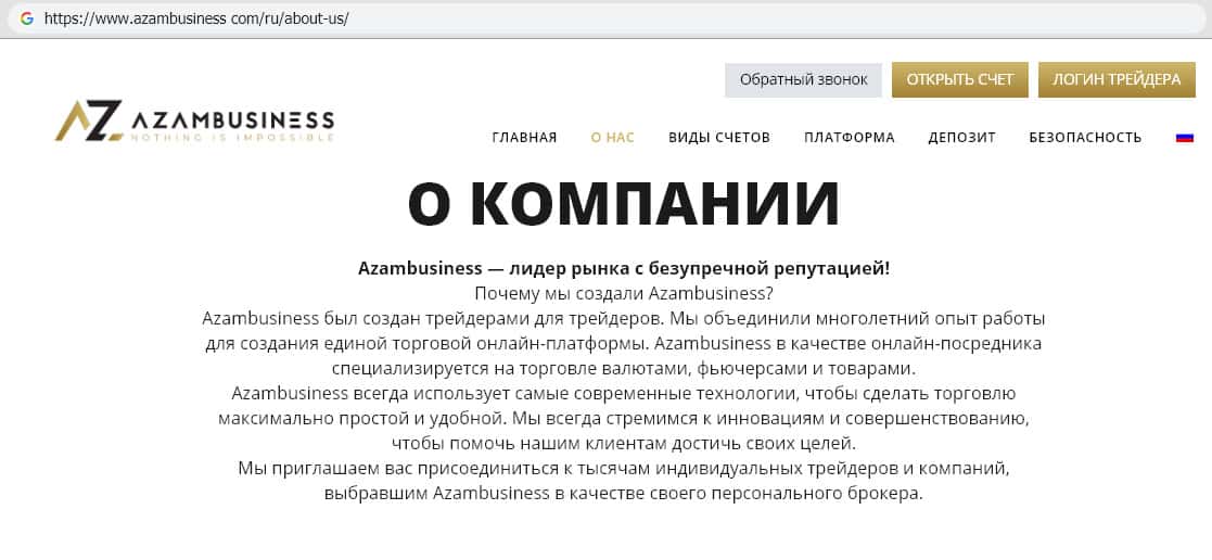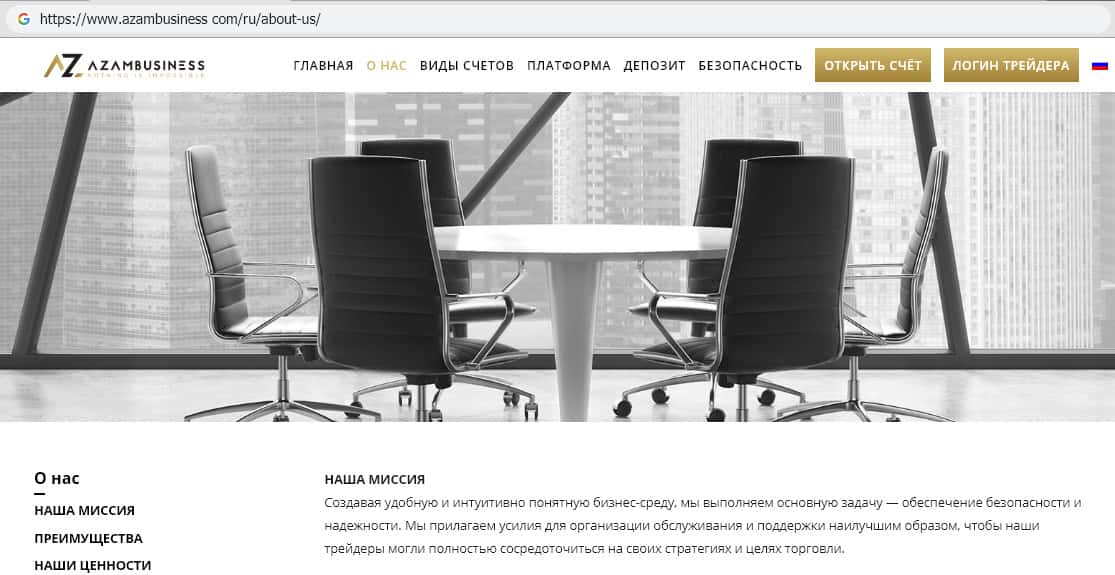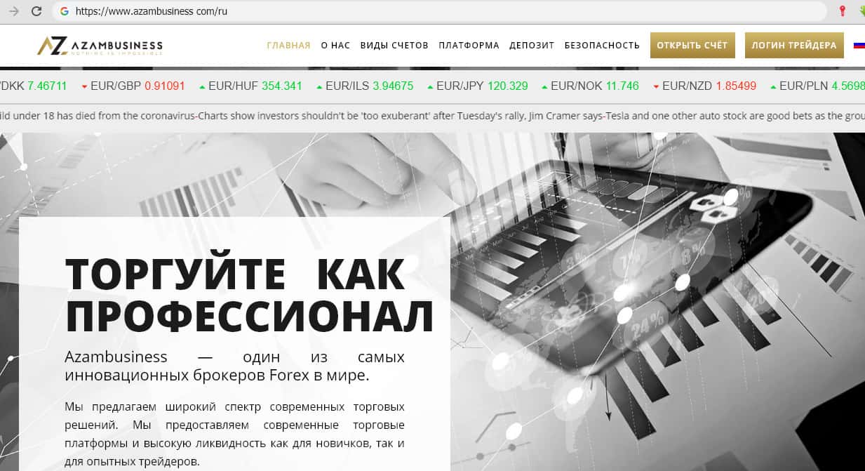 azambusiness com - собственно портал мошеннического ресурса брокерской конторы Азам Бизнес