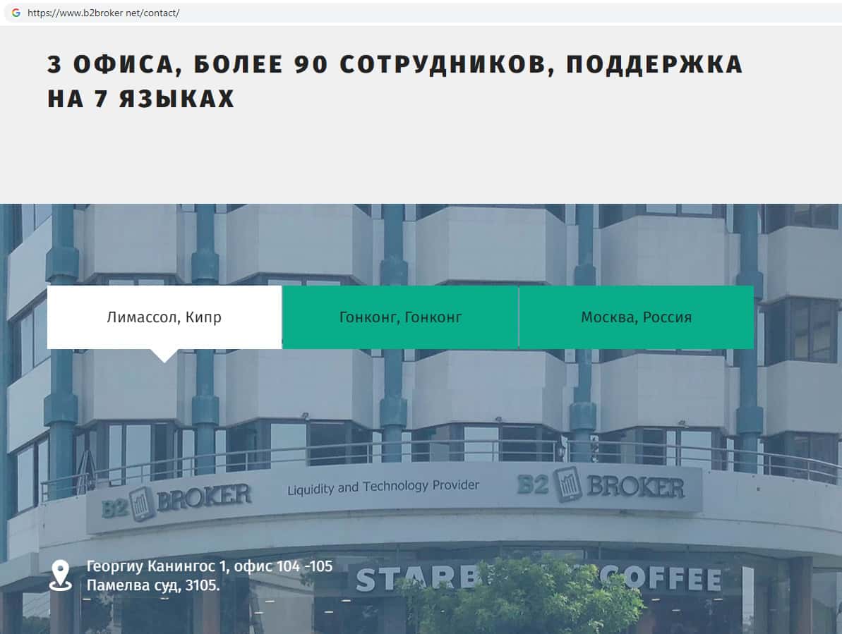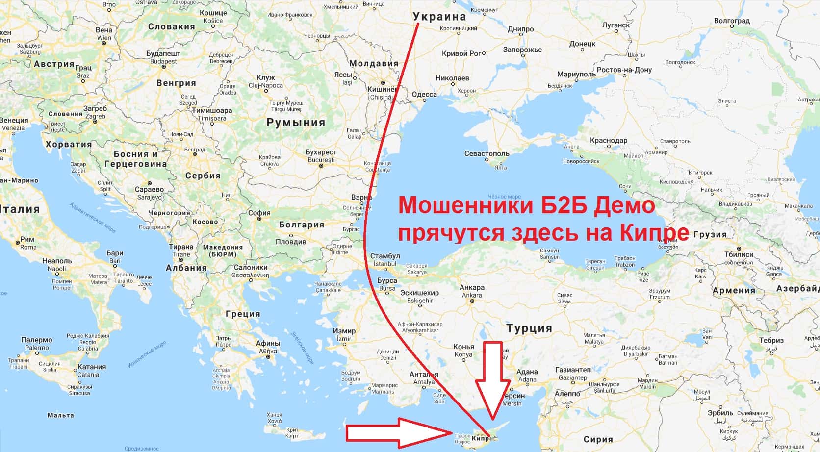 Жульническая организация Б2Б Демо не указывает местонахождение компании, но на основном сайте брокерской конторы Б2Брокер указано то, что данная скам-компания имеет оффшорное место регистрации, а именно на Кипре, что является показателем того, что компания не подходит для граждан РФ.