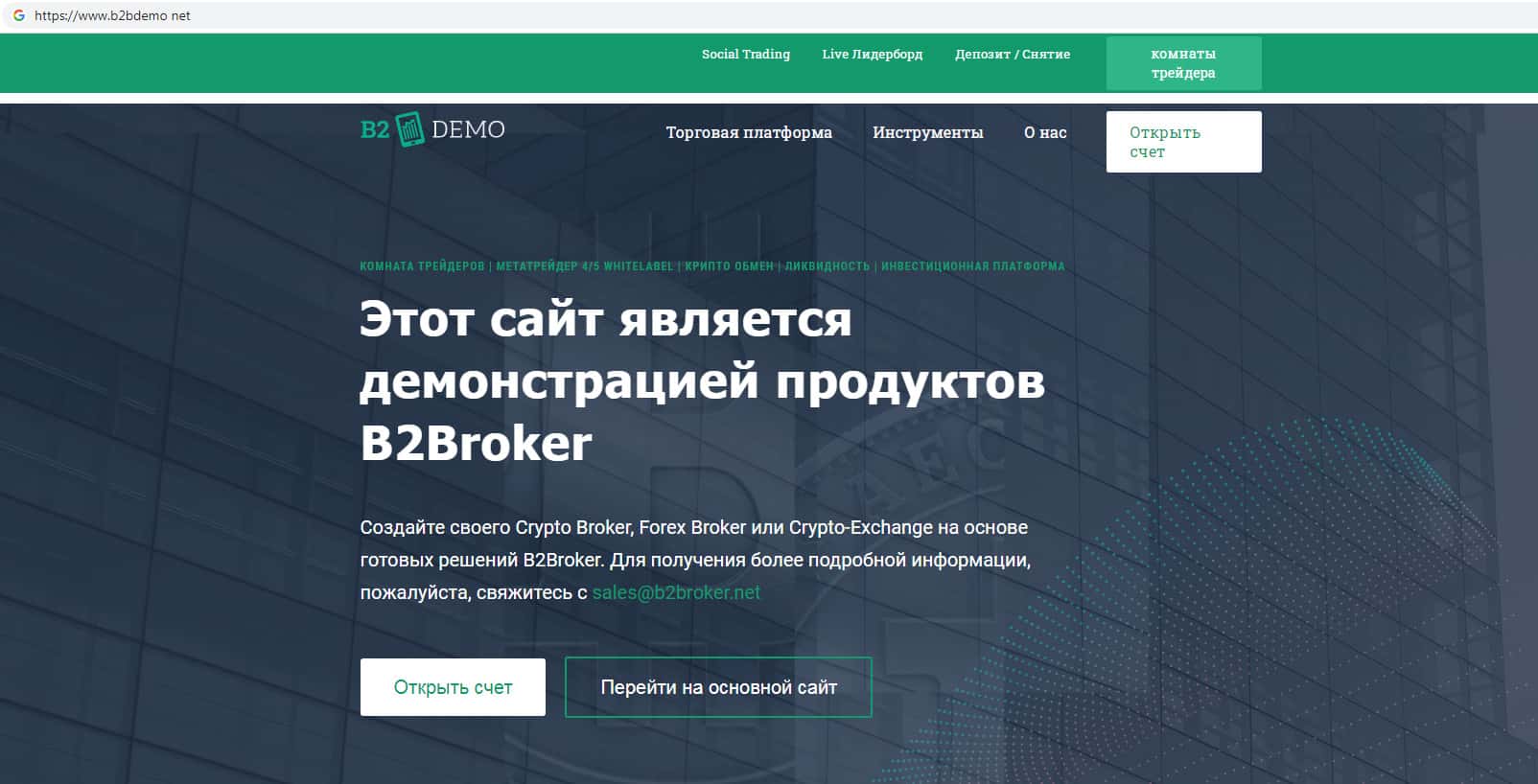 - адрес электронной почты брокерской конторы Б2Б Демо: sales@b2broker net
