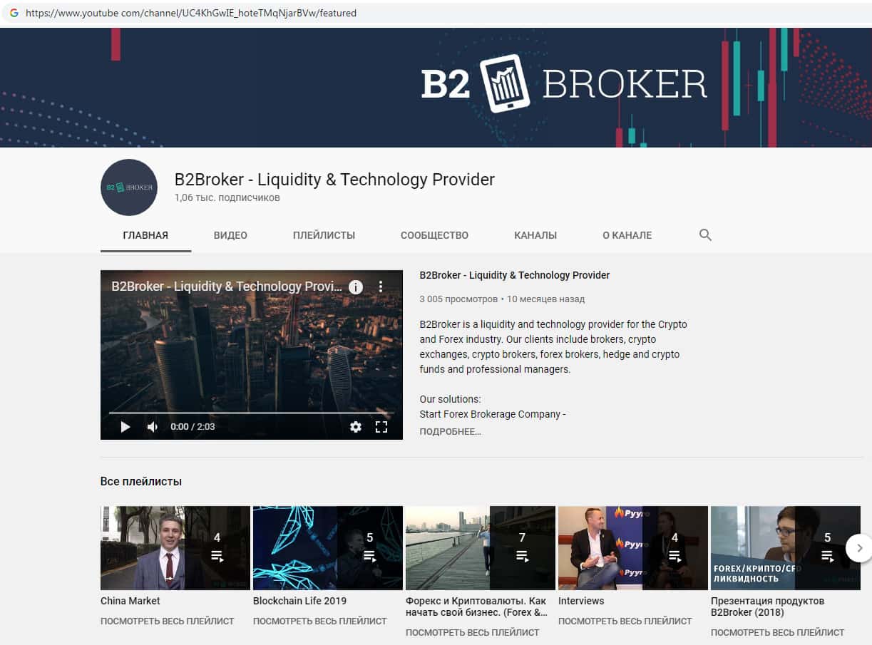 На сайте шулеров Б2Б Демо есть ссылка на Ютуб-канал брокера-мошенника B2Broker