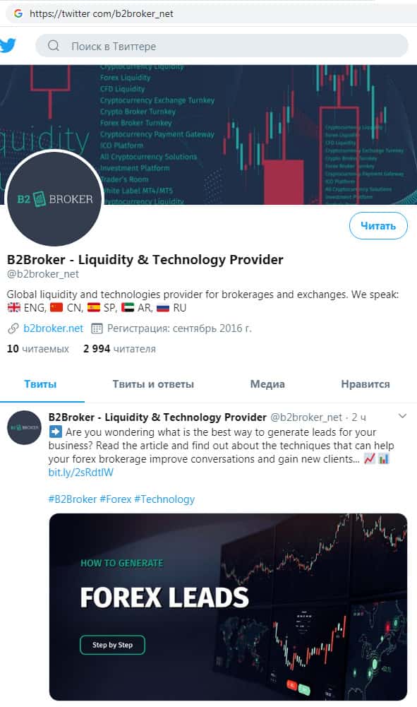 Скам-организация Б2 Брокер вовлекает клиентов в соц сети Twitter