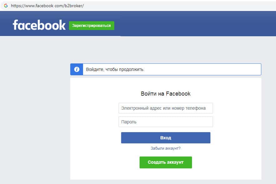 - Страница шараги B2Broker в Фейсбук открыта только лишь для зарегистрированных пользователей