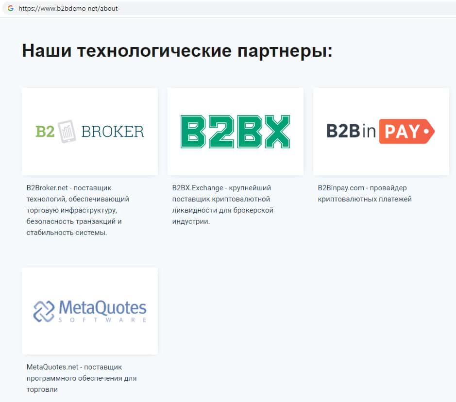 - Интернет-сервис B2BDemo создан для демонстрации продуктов и услуг скам-конторы Б2Брокер