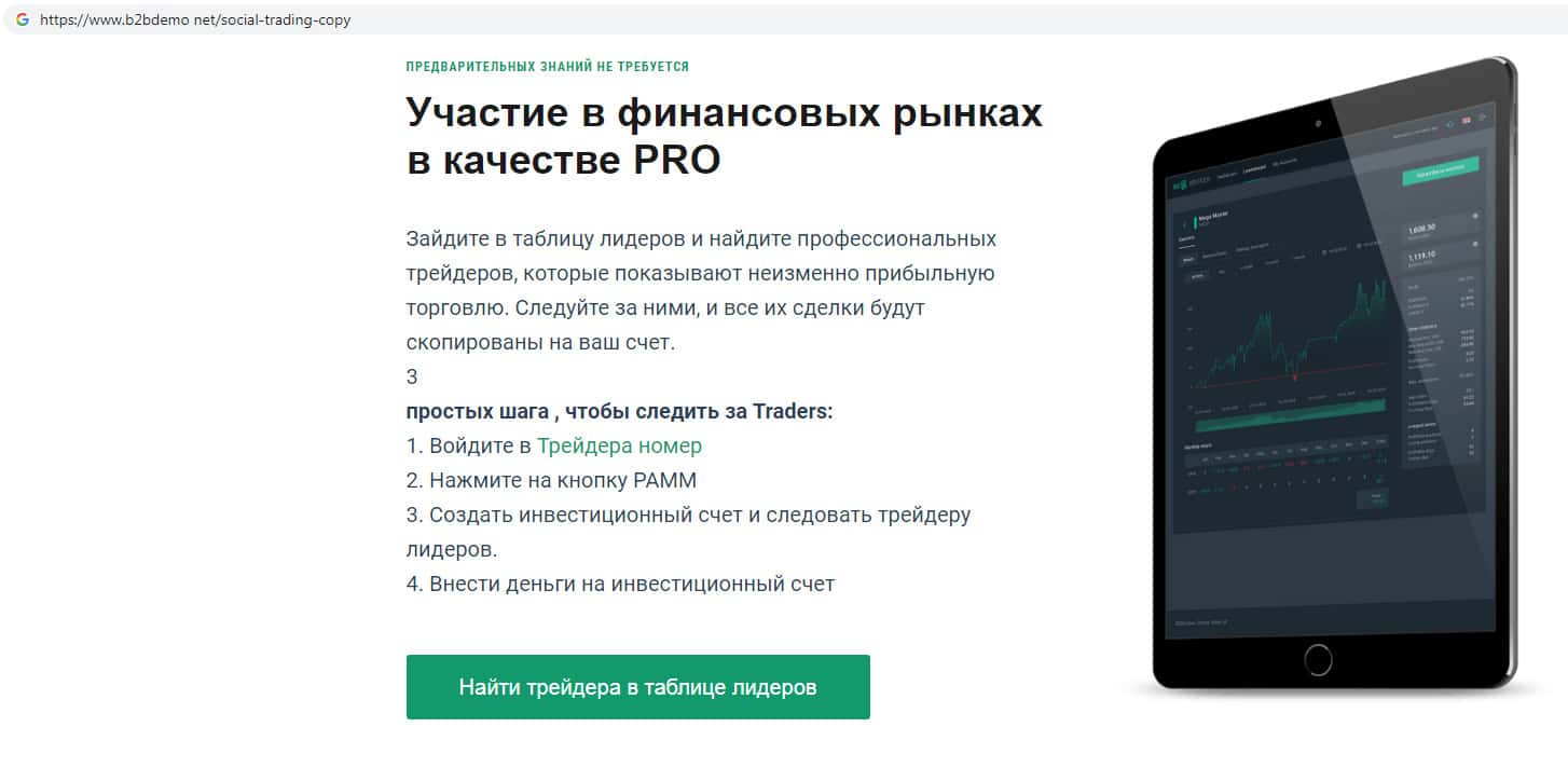 Партнерская программа на сайте брокерской конторы B2BDemo
