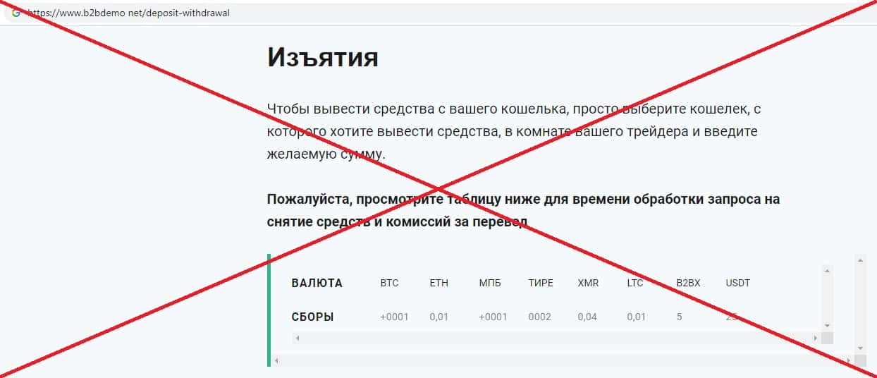 - О способах вывода денежных средств со счета на сайте шулеров B2BDemo