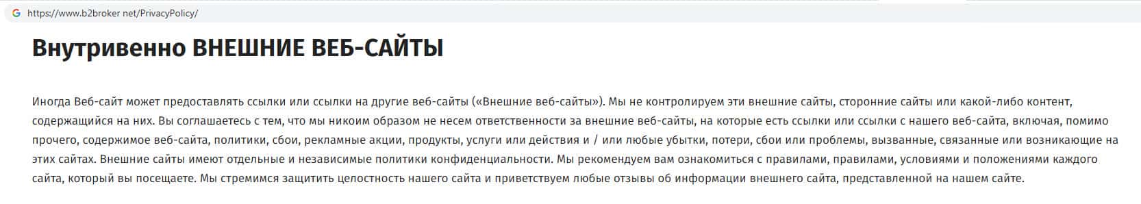 На интернет-ресурсе B2BDemo не один из документов не предоставлен, все ссылки переводят на основной сайт Б2 Брокер, где можно увидеть правила пользования сайтом. Это является очередным признаком того, что веб-сайт конторы был разработан на скорую руку, особо не задумываясь об удобстве пользования сайтом.