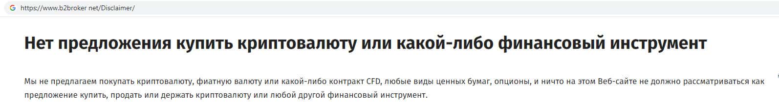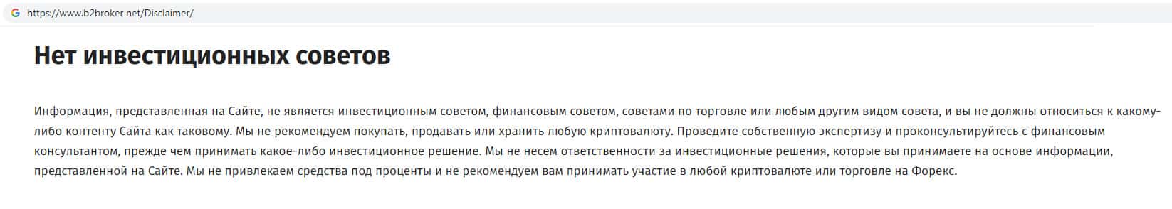 Отказ от ответственности на сайте жульнической конторы Б2Б Демо