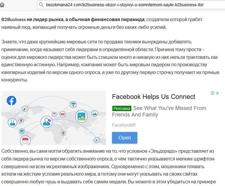 Остатки информации на просторах интернета о лохотроне B2Business Ltd