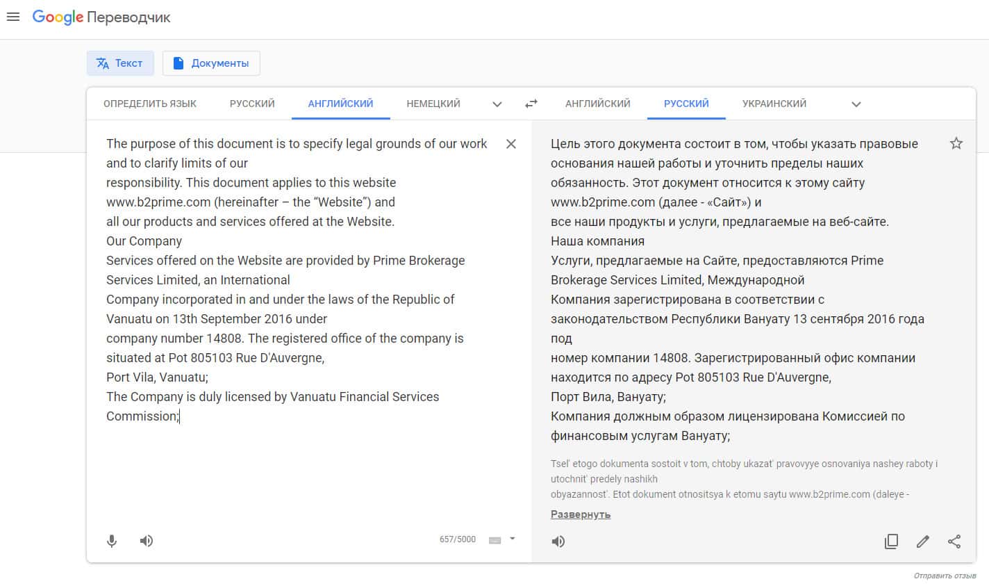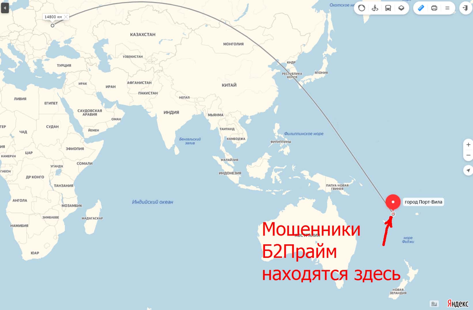 Дополнительным преимуществом для лохотрона Б2Прайм является факт их оффшорной регистрации, а именно: Pot 805103, Rue D'Auvergne, Port Vila, Vanuatu, что дает шулерам B2Prime анонимность их счетов и владельцев. К тому же все суды наивных пользователей с жульем Б2Прайм будут происходить непосредственно на территории оффшора.