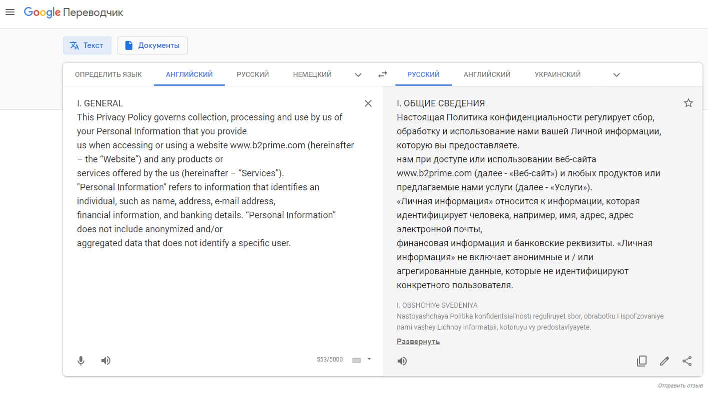 Политика конфиденциальности у мошенников Б2Прайм начинается с довольно стандартной информации о том, что это за документ и зачем он нужен, которая толком не несет в себе никакой информационной нагрузки и добавлена исключительно для виду. На изображении, расположенном ниже, вы можете увидеть начало политики жулья B2Prime.