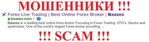 Baazex - это компания мошенников и аферистов, предоставляющая клиентам своего сервиса услуги брокера, взамен на все их денежные средста. Это ещё один скам-проект в международной сети Интернет, созданный мошенниками для незаконного обогащения. Анализ показал, что они являются мошенниками. НЕ рекомендуем связываться с Baazex!!!