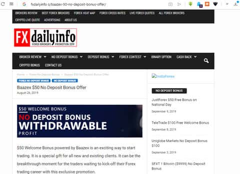 Портал с похожим названием fxdailyinfo co так же был облагодетельствован рассматриваемой нами компанией аферистов. Он также поместил пост о супервыгодных бонусах Баазекс. Несите Ваши денежки, а мы найдем где спрятать.