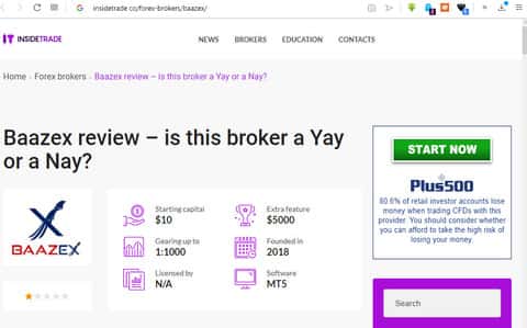 Однако с Baazex всё намного хуже, так как наш тщательный поиск в базе данных регулятора не дал результатов. Мы просто не смогли найти компанию Baazex в любых вариациях на сайте Financial Services Authority .