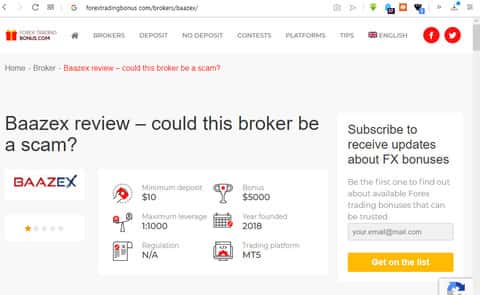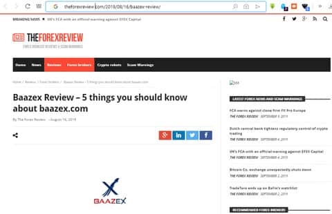 Свежий обзор деятельности компании Baazex на сайте theforexreview