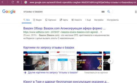 - Обилие рекламных статей, несколько обзорных статей о компании Баазекс и ни одного отзыва клиента