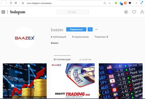Следующей и последней социальной сетью, в которой у Баазекс имеются аккаунты является Instagram. В ней у компании ни много ни мало целых шесть публикаций и аж пять подписчиков.