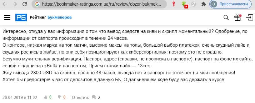 - Отзывы обманутых клиентов букмекерской конторы Бафф Бет