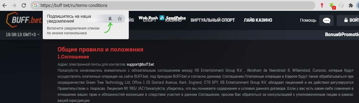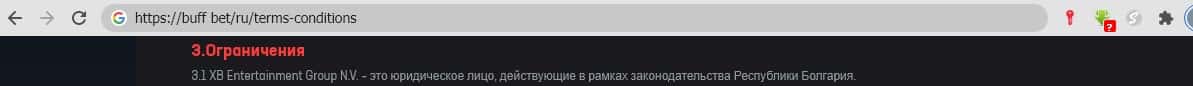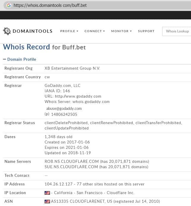 Как заявлено на портале Buff Bet, сайт букмекерского проекта и казино принадлежит компании XB Entertainment Group N.V. Эти же данные подтверждены при регистрации домена.
