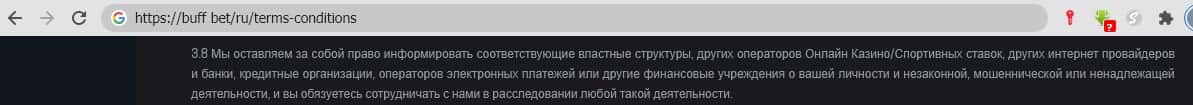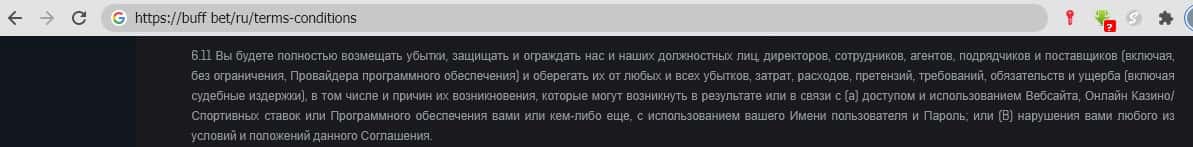 Ниже представлен полный текст этого сомнительного "документа", гордо именуемого "Клиентским соглашением пользователя казино и букмекерского агенства Buff Bet".