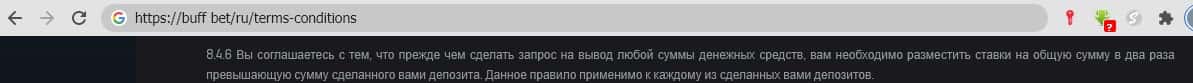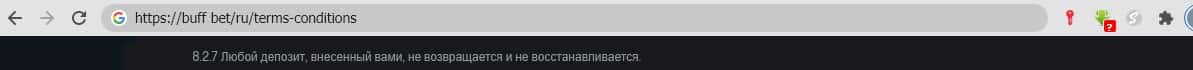 Депозит, внесенный на игровой счет казино или спортивные ставки аферистов Buff Bet не возвращается клиенту.