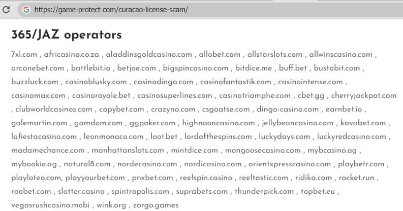 Проблема лицензии, предъявляемой Buff Bet состоит ещё и в том, что этой лицензией прикрывается множество аферистов. Вот их список с портала game-protect com.