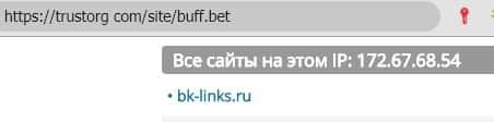 По данным, предоставленным порталом "Доверие в сети" (trustorg com) на одном IP с Buff Bet находится ещё одна букмекерская контора, вернее сайт bk-links ru с переходом на букмекерскую контору МелБет.