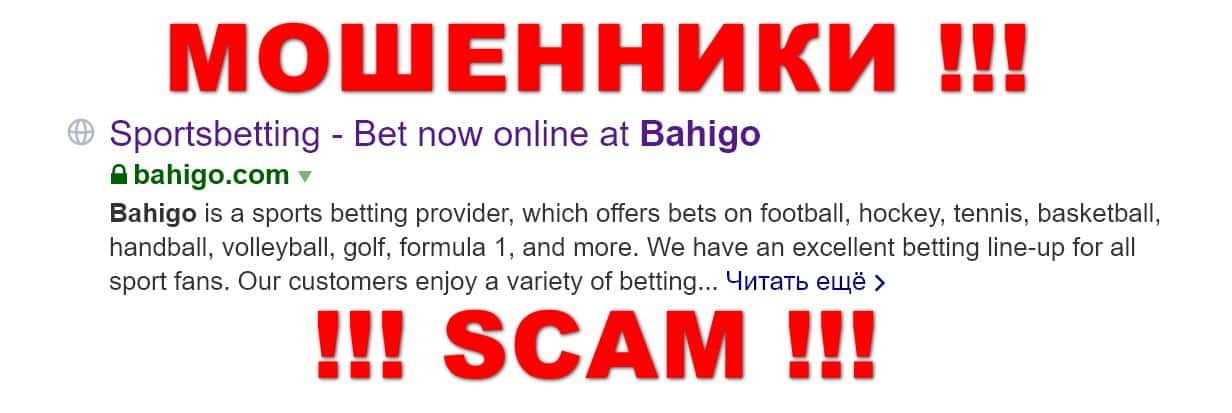 Бахиго - компания аферистов и мошенников! Начав в качестве букмекерской конторы, в настоящее время они представляют два в одном: онлайн казино и букмекерскую контору. Играя на человеческих слабостях, мошенники зарабатывают свои миллионы, не особо задумываясь о законности и тем более гуманности своих действий. Отсутствие регистрации, лицензий на свою деятельность только подталкивает аферистов к расширению сферы своей нелегальной и преступной деятельности. Не поддавайтесь минутным слабостям и искушениям быстрого роста своего состояния на Bahigo и уму подобных онлайн казино и букмекерских конторах!