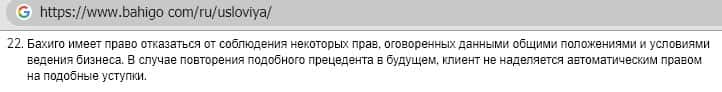 В п. 22 аферисты из Bahigo оговаривают, что имеют право в любой момент отказаться взятых на себя обязательств и принятых ими же правил.