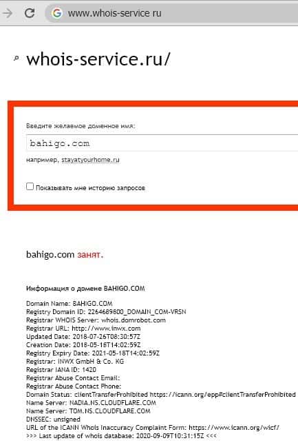 Проверка на принадлежность домена результатов не дала. Что вполне ожидаемо. Было бы, наоборот, странно. если бы мошенники прямо заявили о себе. А так хозяева этого сомнительного бизнеса пожелали остаться неизвестными при регистрации домена bahigo com.